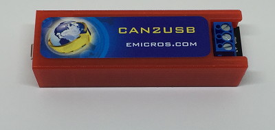 The CAN2USB and BareCAN adapters from Emicros are powerful low-cost USB to Controller Area Network (CAN) adapter. Powered by the MicroChip PIC18F258, this powerful device provides an easy to use interface to a Controller Area Network. Download the documentation user232.pdf for complete information.