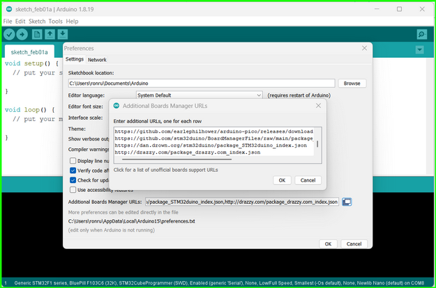 A new board manager in the Arduino IDE is needed. Under File/Preferenced the following needs to be added.